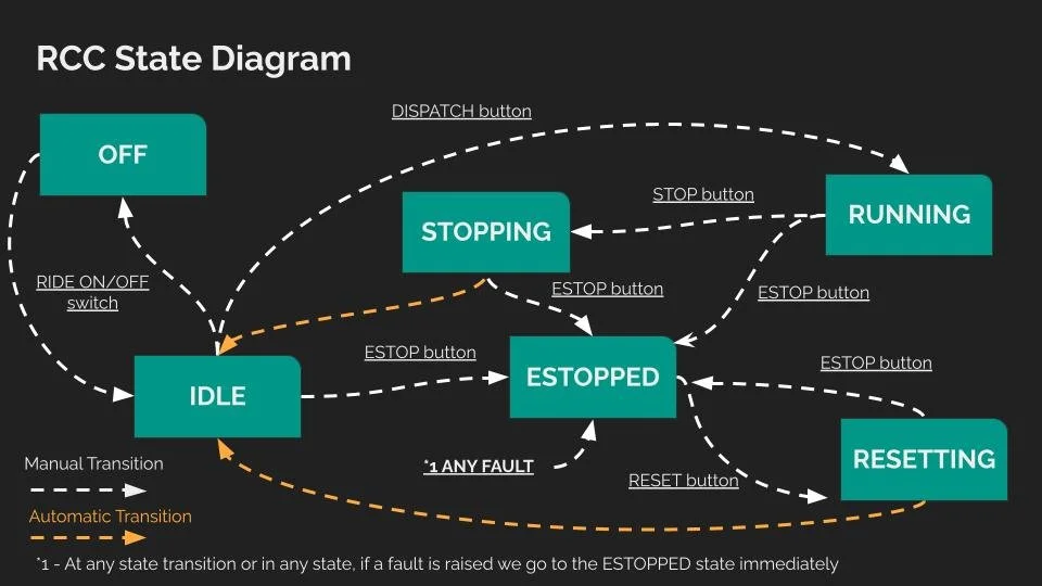 To control the ride drive system with user control, I designed and implemented a Raspberry Pi ride control system with a state machine and event-driven architecture, integrating a UART PID motor controller for precise motion control and embedded safety logic.